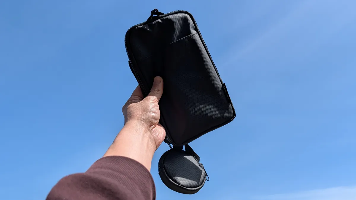 ワイヤレスイヤホンや目薬を入れておきやすいサイズ感で、このポーチがあるだけで機能性がぐっと高まります。